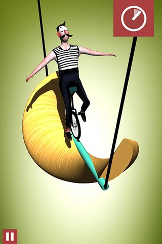 独轮车APP虽仅有25关,然而每一关都设有颇具难度的骑行道路,像是一条绳索、一座旋转台、摇摇晃晃的桥,又或是环形跑道。游戏设定为胡子大叔骑着独轮车持续前行,玩家触碰屏幕时,大叔便会向后蹬车,因此玩家需不断调整大叔的骑行方向,从而顺利穿越或避开危险道路。在钢索上平衡独轮车,Bamba就是个骗子。这款游戏风格简约,核心操作在于来回调整,Bamba的特性使得这25个关卡的难度越来越高。