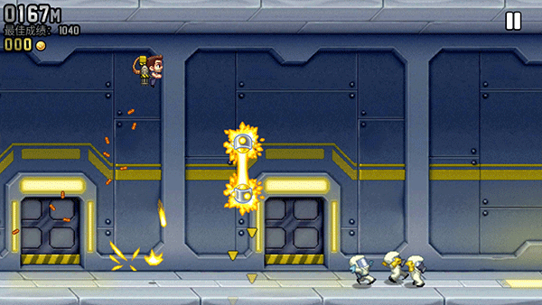 《疯狂喷气机》2024最新版本,是一款超有趣的横屏飞行跑酷手游。故事背景设定在一个神秘工厂,主角barry为阻止科学家的阴谋,潜入工厂展开调查,并拿走了他们研发的个人火箭飞行器。然而在逃离途中,遭遇敌人设置的各类机关。此时,玩家就要助力主角barry突破重重包围成功逃脱。游戏画面清晰流畅,场景切换自如,金币以华丽的排列组合呈现,各种道具功能也得到了淋漓尽致的展现,为玩家带来强烈的视觉冲击,玩起来丝毫不会感到厌倦乏味。