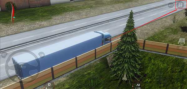 2、轻点右上角菜单,接着点击左侧的钥匙图标来启动卡车,随后就能开始进行踏板操作。其中,方向盘位于坐标处,刹车和油门在右侧,前进挡与倒挡则在油门的上方。