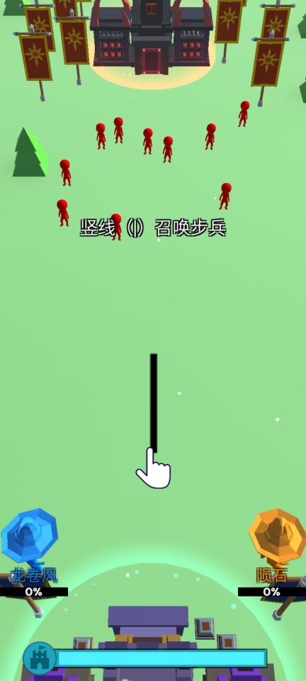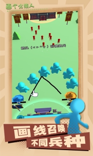 3、于屏幕上绘制不同线条,便能召唤出不同兵种的火柴人。比如,画出竖线可召唤步兵。
