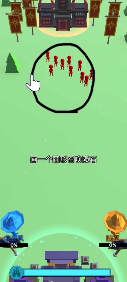 4、如下图所示,画出圆形召唤陨石,利用大火球魔法击败敌军;