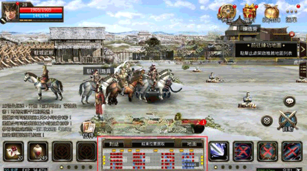 接着回到游戏画面请看下方地图,假设全部的空格都显示红色,代表这个城镇已经没有位置可以提供你摆摊了,请你移动到其他城镇贩卖商品。