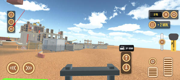 1、点击左下角的两个方向按钮分别是控制叉车的左右方向;