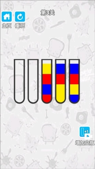 2、玩家点击瓶子将同一颜色的液体放到一个瓶子里;