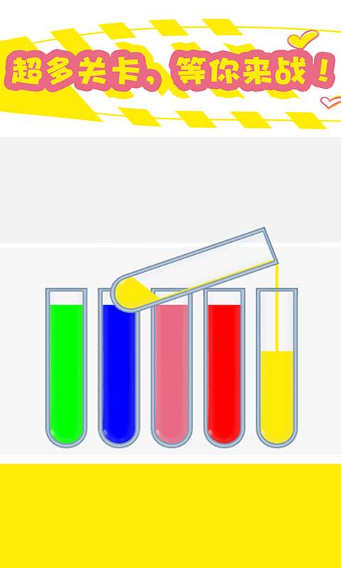《倒水我最强》是一款简单的休闲闯关手游。游戏里倒水方法多样,玩家能尝试各种方式,把不同颜色的水倒入试管,十分考验思维判断能力,挑战性十足。每个玩家都能加入挑战,关卡设计新颖,自由玩耍可带来无尽快乐。游戏规则是只有将相同颜色的水倒入才能通关,若不知如何操作,别勉强自己,不妨新增一个空瓶子,这能助玩家轻松缓解压力。游戏对玩家的耐心与细心要求颇高,感兴趣的玩家快来体验倒水游戏的乐趣吧!