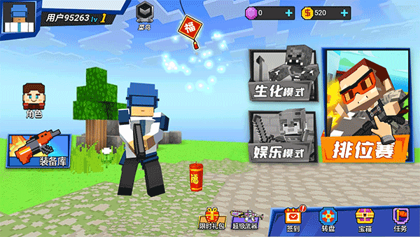 1. 进入勇者吃鸡对决手机版的主页,然后点击排位赛(生化模式与娱乐模式需达到一定等级方可开启)。