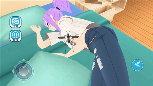 2.解压玩法下,玩家操控蚊子在房间中四处乱飞,寻觅合适目标来体验吸血过程。