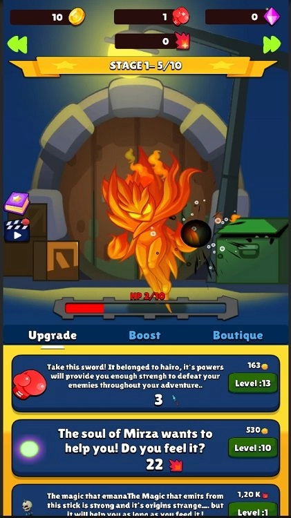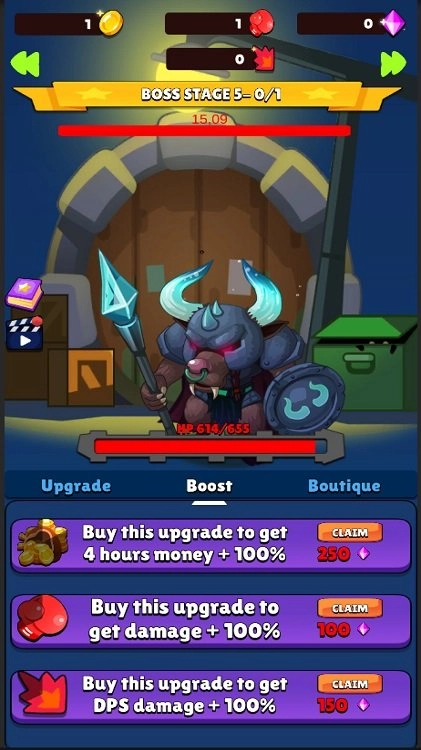 3、收集地牢中的宝藏和财富,不断的提高勇者的属性,锻造了适合你自己的装备,和怪物boss不断的交战。