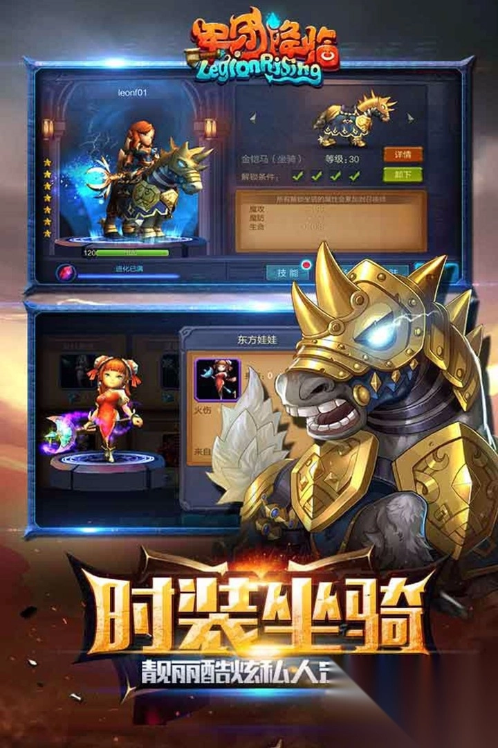 3、进阶养成:玩家可以通过不断升级和装备强化来增强军团的整体实力。