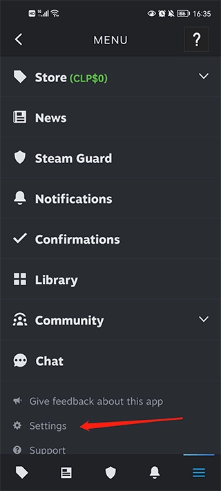 ●打开 Steam 手机应用。 如果您已经在手机上登录,请前往 Steam 令牌菜单(底部导航栏中间的“盾牌”图标)以获取“扫描二维码”提示。