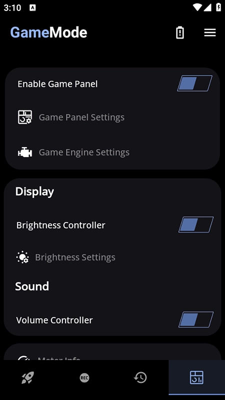 2、软件会自动配置游戏模式,包括自动拒绝来电、阻止通知、清除后台应用等,用户也可根据需求进行相关设置,如调节亮度、音量,更改Wi-Fi状态等。