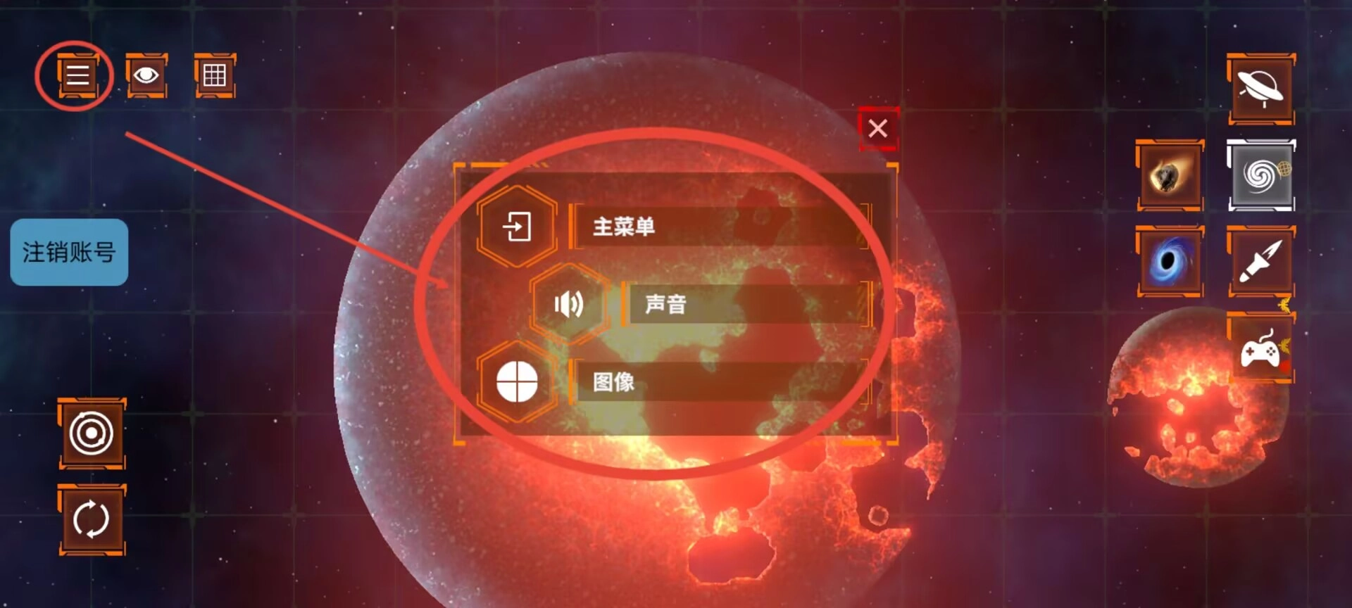 3、通过菜单按钮进入暂停界面,可执行返回主界面、调整音效及画面参数等系统设置操作。