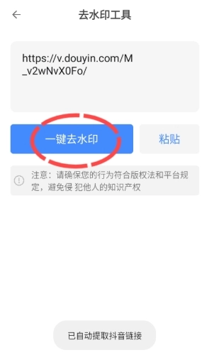 3、自定义输入正确的短视频链接地址,点击“一键去水印”