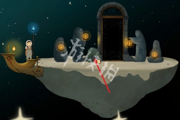 3、返回星星岛后,先让小怪兽登上船,小女孩随后上船,不过不要踏上梯子。