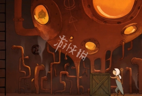 3、操控小女孩启动机器,使蒸汽将小怪兽吹起。
